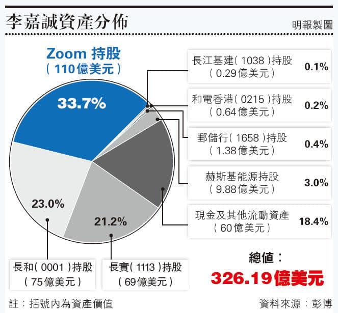 再加上李嘉誠除了出售實物資產,但同時增持科技投資,例如投資Facebook(總持股約3%,估值240億美金),投資人造肉、人造蛋、投資生物科技(也包疫苗),而最近則投資視訊軟件Zoom而大賺,佔他人生中接近三份一的身家。